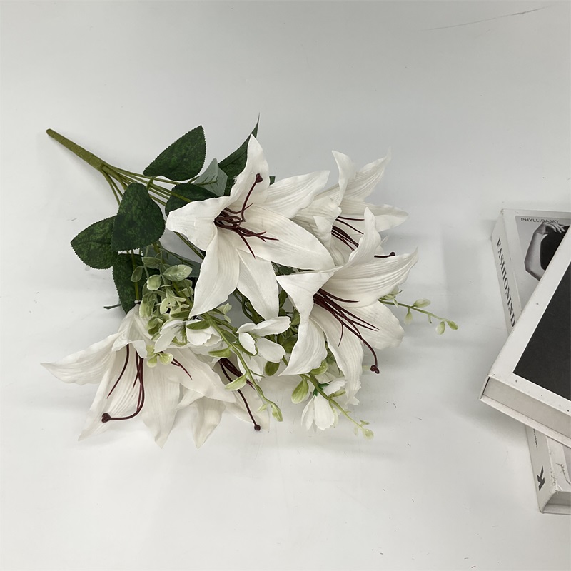 7 Fork Factory New Popular Artificial Flower Lily Double Head Decorative Flower Lily Film Material Wedding Decoration Silk Lily