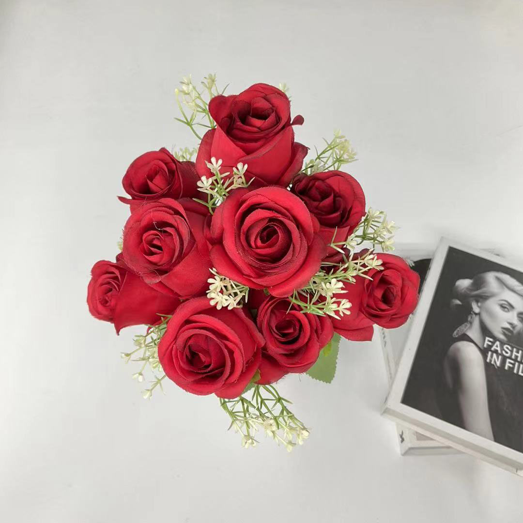 2023 Hot Sale New style 9 Heads Wedding Decorations Blush Rose Bouquet Artificial